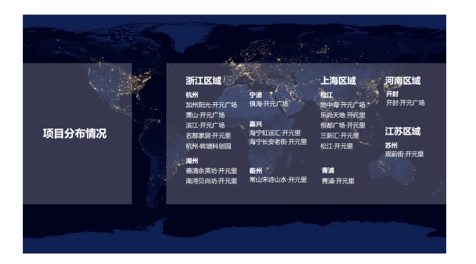 近年來,開元商管秉承著提升商業(yè)價值,創(chuàng)造美好生活的企業(yè)使命,堅守專注、增值、共贏的經(jīng)營理念,憑借對扎根城市發(fā)展趨勢的深刻理解和敏銳洞察,精心策劃并實施了精準(zhǔn)的戰(zhàn)略布局,專注于深耕新興區(qū)域。從浙江,到上海,再到河南,開元商管通過精心運營“開元廣場、開元里”等多條差異化產(chǎn)品線,深深扎根城市,精準(zhǔn)滿足所在區(qū)域的客群需求,項目覆蓋杭州市、湖州市、寧波市、嘉興市、衢州市、開封市、蘇州市、上海松江區(qū)、上海青浦區(qū)等多個城市、區(qū)域。