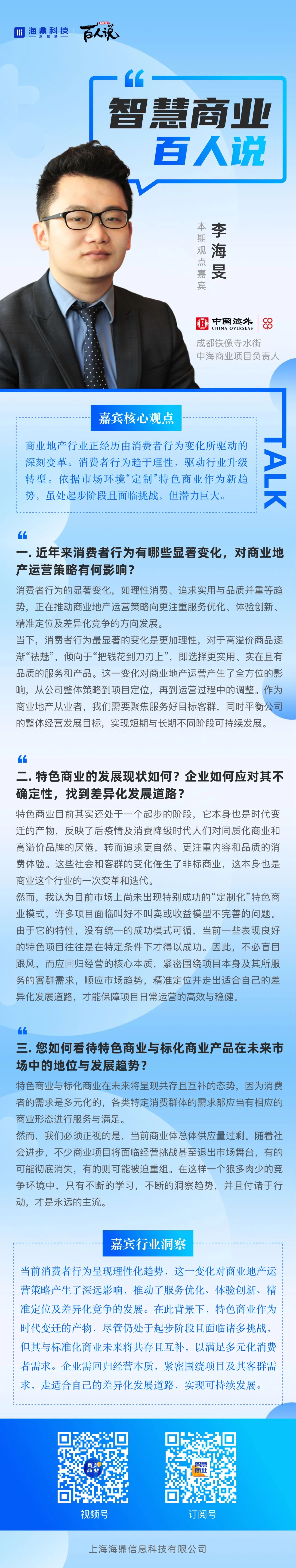 智慧商業百人說 | 成都鐵像寺水街李海旻:趨于理性的消費者正在驅動行業升級轉型