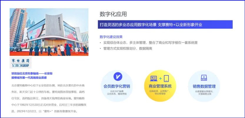 ?多業(yè)態(tài)整合與靈活管理?:靈活的多業(yè)態(tài)應(yīng)用數(shù)字化場(chǎng)景將商業(yè)和寫(xiě)字樓整合在一套系統(tǒng)內(nèi),同時(shí)實(shí)現(xiàn)了權(quán)限劃分和數(shù)據(jù)隔離。這一創(chuàng)新舉措不僅提升了管理效率,還為賽特+的業(yè)務(wù)拓展提供了更多可能性。