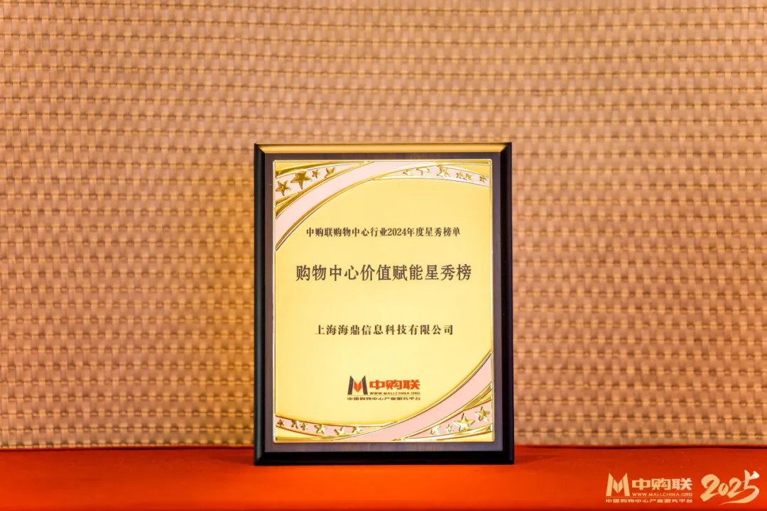 大會當晚,海鼎科技憑借在商業地產數字化領域的卓越貢獻,于?2025中購聯乙巳春茗晚會暨星秀榜單發布盛典?上榮登?“2024購物中心價值賦能星秀榜”?。這一獎項不僅是對海鼎科技技術實力與服務能力的權威認證,更彰顯了海鼎科技以創新驅動行業高質量發展的長期價值。