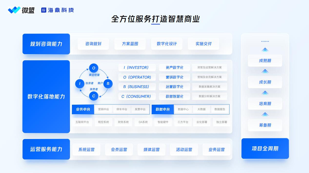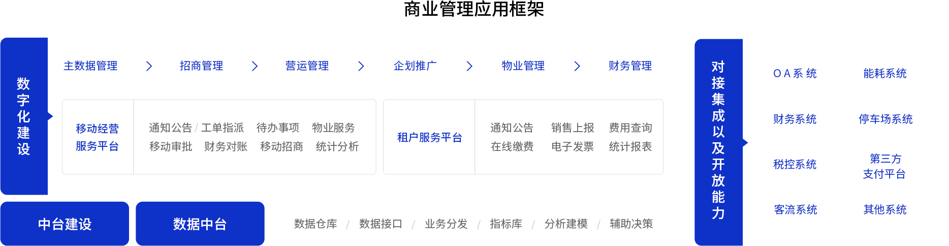 25年+專(zhuān)注和聚焦商業(yè)地產(chǎn),深耕購(gòu)物中心、百貨、寫(xiě)字樓、社區(qū)商業(yè)等多業(yè)態(tài),憑借數(shù)據(jù)及技術(shù)優(yōu)勢(shì),通過(guò)平臺(tái)、場(chǎng)景、數(shù)據(jù)和服務(wù)四大模塊助力,賦能招商、營(yíng)運(yùn)、物業(yè)、財(cái)務(wù)、經(jīng)營(yíng)分析全場(chǎng)景進(jìn)行資產(chǎn)管理進(jìn)行數(shù)字化運(yùn)營(yíng)體系建設(shè)。